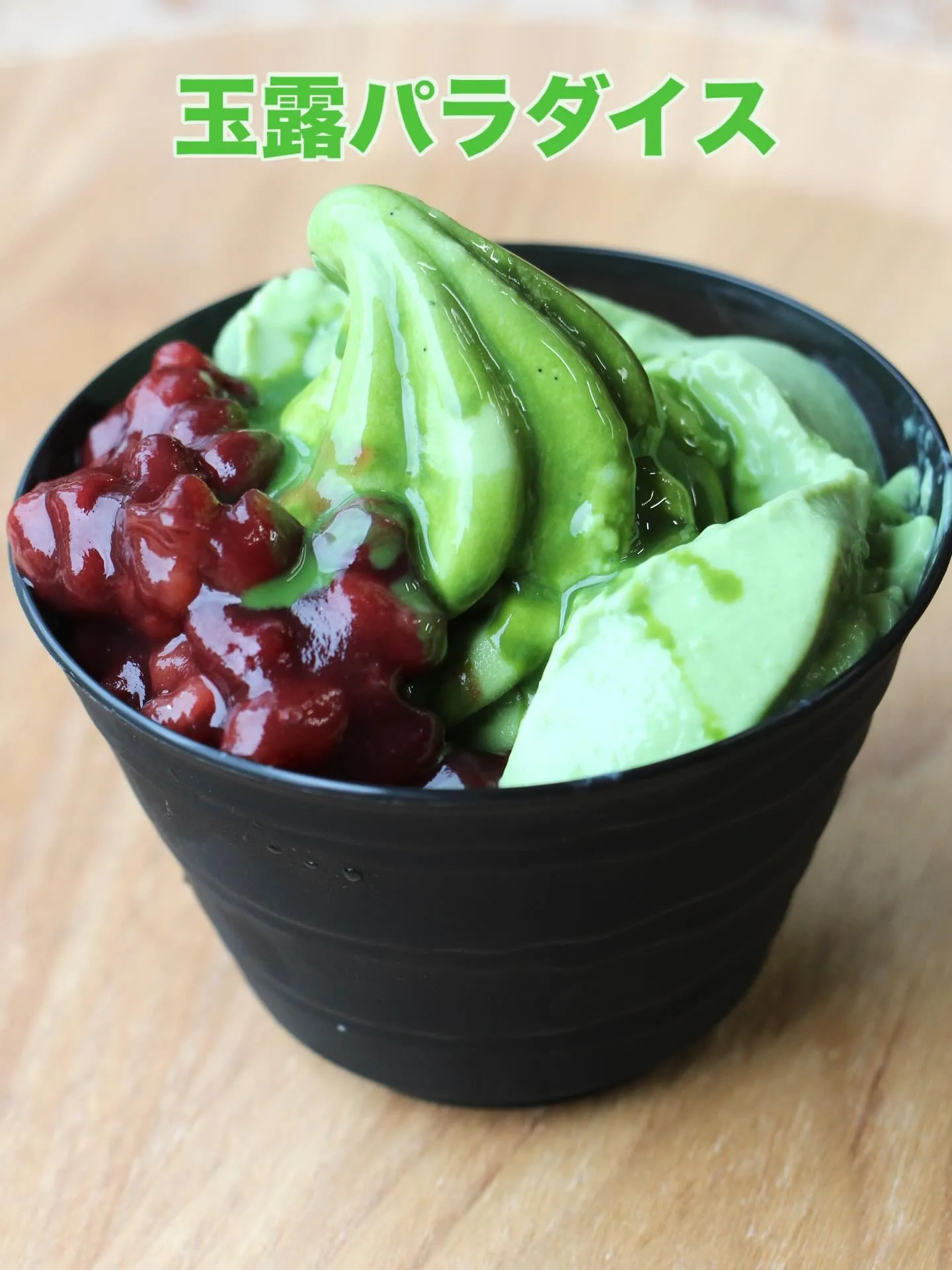 玉露ソフトと粒あんと玉露パンナコッタと玉露ソースの究極の組み合わせを一気に召し上がってください